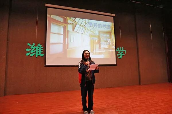 学校党委书记、校长唐培森宣布:“潍坊实验中学第八届读书节开幕!”