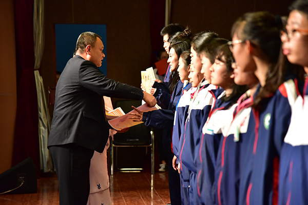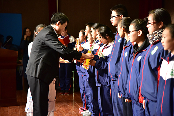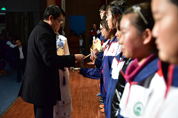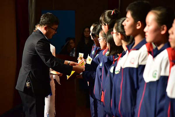 初中部主任秦朋杰为获奖个人颁奖