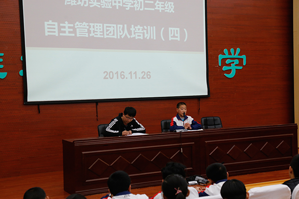11月26日,我校初二年级召开自主管理团队培训会。年级学生会纪检部部长杨璨瑜、卫生部部长辛焕之、女宿管部部长张佳合分别对晚自习、教室卫生、宿舍的管理等问题进行反馈,并提出了具体可行的解决措施。