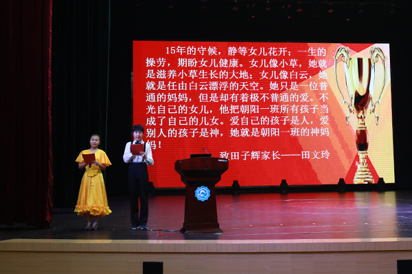 主持人宣读颁奖词,十二位优秀家长分别上台