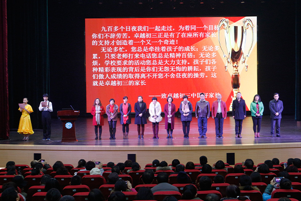 为形成家校教育合力,提升学校整体育人水平,1月13日,我校在演艺中心举行初三年级家长会,邀请家长们来校共商孩子发展大计。学校校长刘树忠校长、副校长丁春和、初中部主任秦朋杰以及初三年级领导、首席导师们列队欢迎。