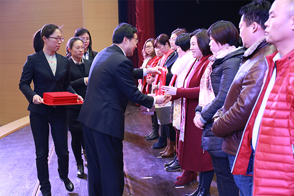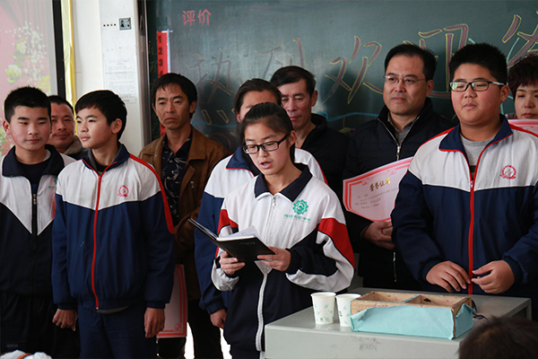 “自古亲情感天地,涌泉难抱父母恩。”会上,初三学生代表为家们长献上了新年的礼物——《献给爸爸妈妈的赞歌》,朴素的话语传递着孩子们对家长的崇敬与深情。随后,进行了初三年级“我心目中的好家长”的颁奖典礼,刘树忠校长为获奖家长颁发证书,并送上学校精心挑选的礼物。