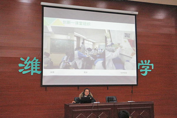 闫冬梅老师结合北京学习谈了自己的感悟,她指出了海淀区教育与271教育的共同指出,并且谈了自己的收获:“为理解而教—深度教学”,青年教师受到了很大启发。