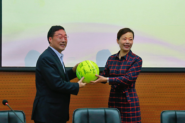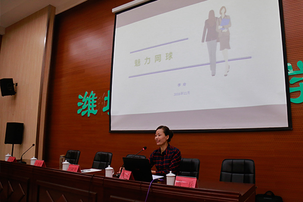 会上,潍坊市网球协会副会长李玲做《魅力网球》专题报告,并向我校赠送载有网球精神的纪念球。北