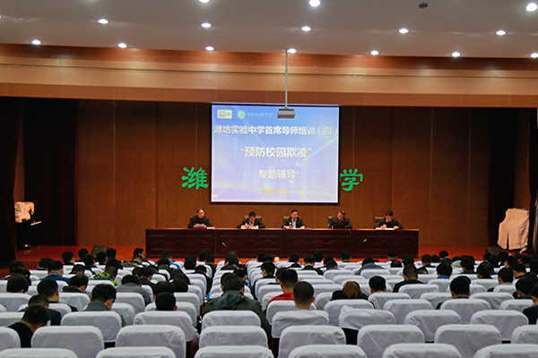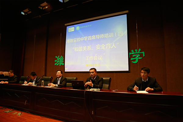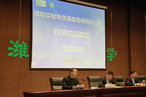 会上,安全科主任李志民对全体首席导师做“预防校园欺凌”专题辅导。李主任要求全体老师提高对校园安全的认识,采取有力措施预防校园暴力,确保师生生命安全。随后,丁春和副校长主持召开“和谐关系、安全育人”工作会议,强调首席导师摆正工作态度,做高层次的教育引领。