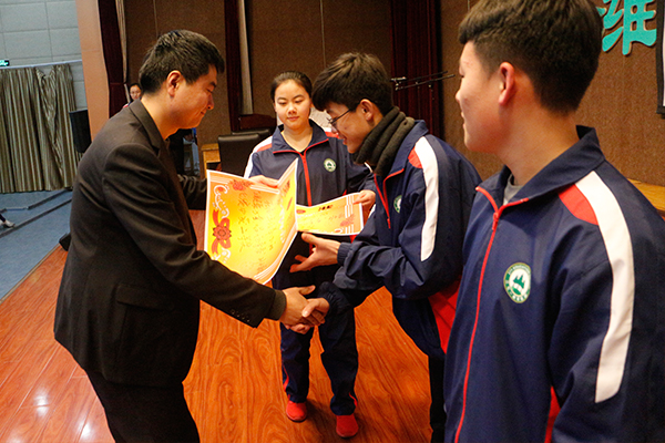 高一年级主任邢泉城为获奖班级颁奖
