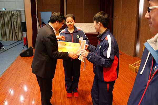 刘树忠校长为获奖班级颁奖