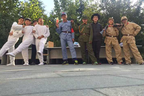 学生认真表演