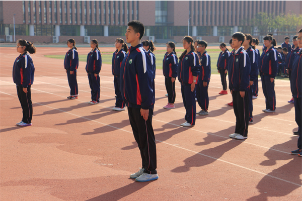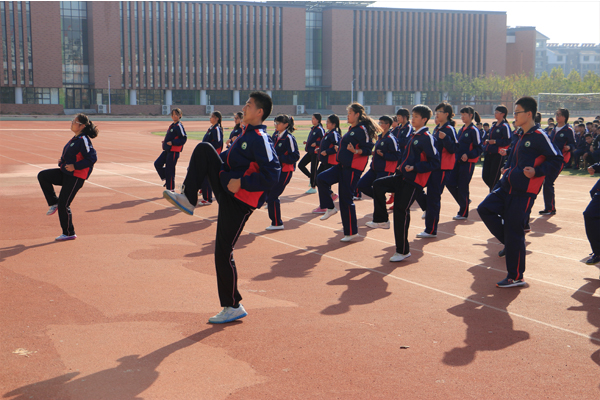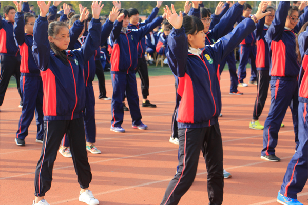 各个班级在体育部部长的带领下跑步入场,他们口号响亮、步伐整齐有力,同学们的手臂、抬腿、胳膊、拍掌、跳跃整齐划一,每一位孩子脸上都洋溢着自信。由各班首席导师组成的评委组本着“公平、公正、公开”的原则,从激情、动作幅度、精神面貌等方面进行全面评分,最终评出一二三等奖。同学们的精彩表现赢得了各班首席导师的肯定。