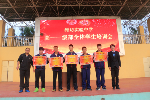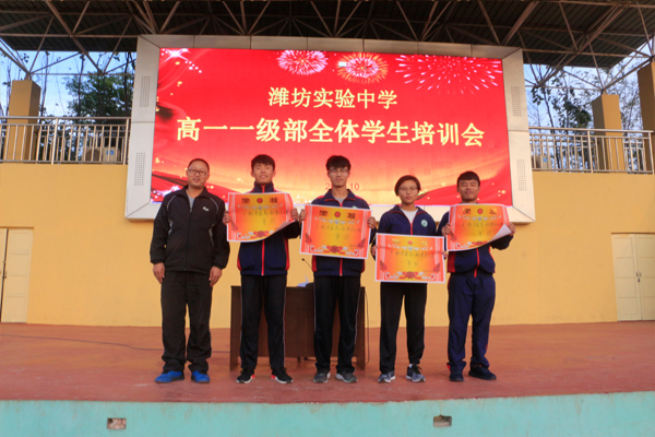 高一一级部主任吴建辉、副主任李五昌与三等奖获奖班级合影