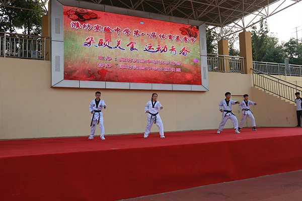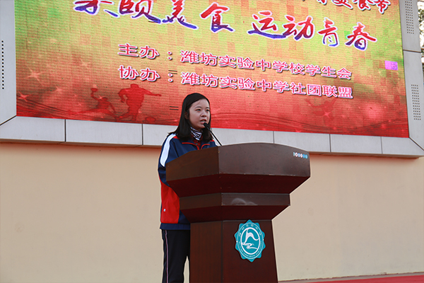 最后,唐培森校长宣布:“潍坊实验中学第八届体育美食节开幕!”