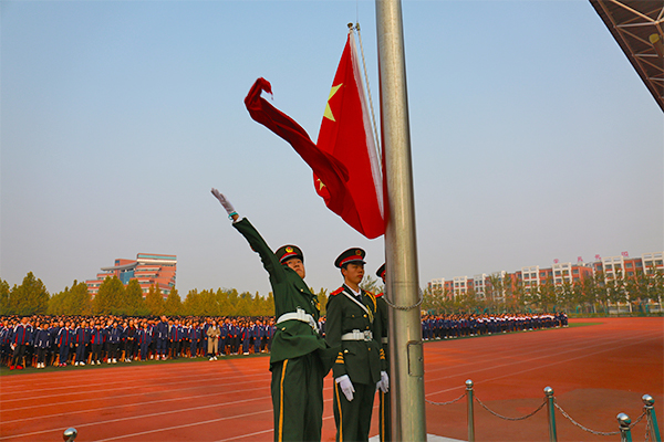升国旗,唱国歌。朝阳下,蓝天与五星红旗交相辉映。节目展示环节,糅合武术套路、泰拳、自由搏击、跆拳道等元素的“武博浩荡”表演,展示了同学们的灵动与力量;断点舞团带来的街舞节奏明快、动感十足,跳出了青春的节拍、时代的风采。