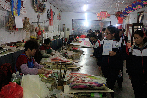 第二站:杨家埠民间艺术大观园。这里是中国民间文化艺术之乡和民俗风情浓厚的旅游胜地,是齐鲁千里民俗旅游线上的一颗璀璨明珠。杨家埠是中国三大木版年画的主要产地,以杨家埠风筝为代表驰名中外。同学们在这里与手工艺老师傅交流学习,动手实践,真切感受中国民俗文化的魅力。